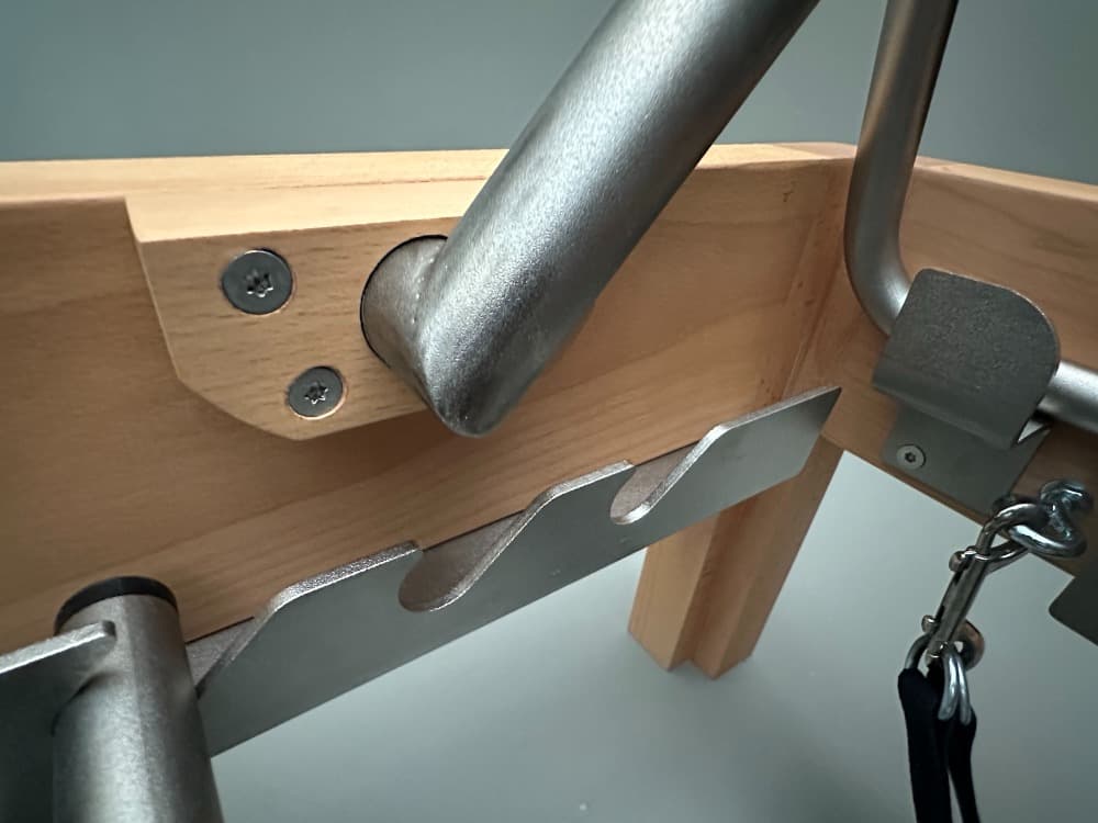 Este reformer, fabricado con madera de haya vaporizada, ofrece una combinación perfecta de resistencia y belleza natural. Diseñado según las medidas originales del método clásico de pilates, asegura una experiencia auténtica y efectiva. Su estructura ergonómica proporciona comodidad y soporte, permitiendo a los usuarios realizar ejercicios con fluidez y control. Además, su diseño equilibrado, que fusiona la elegancia de la madera de haya con la estabilidad del acero, lo convierte en una pieza tanto funcional como estéticamente atractiva. Ideal para principiantes y profesionales, este reformer es la elección perfecta para aquellos que valoran la calidad y la tradición en su práctica de pilates.